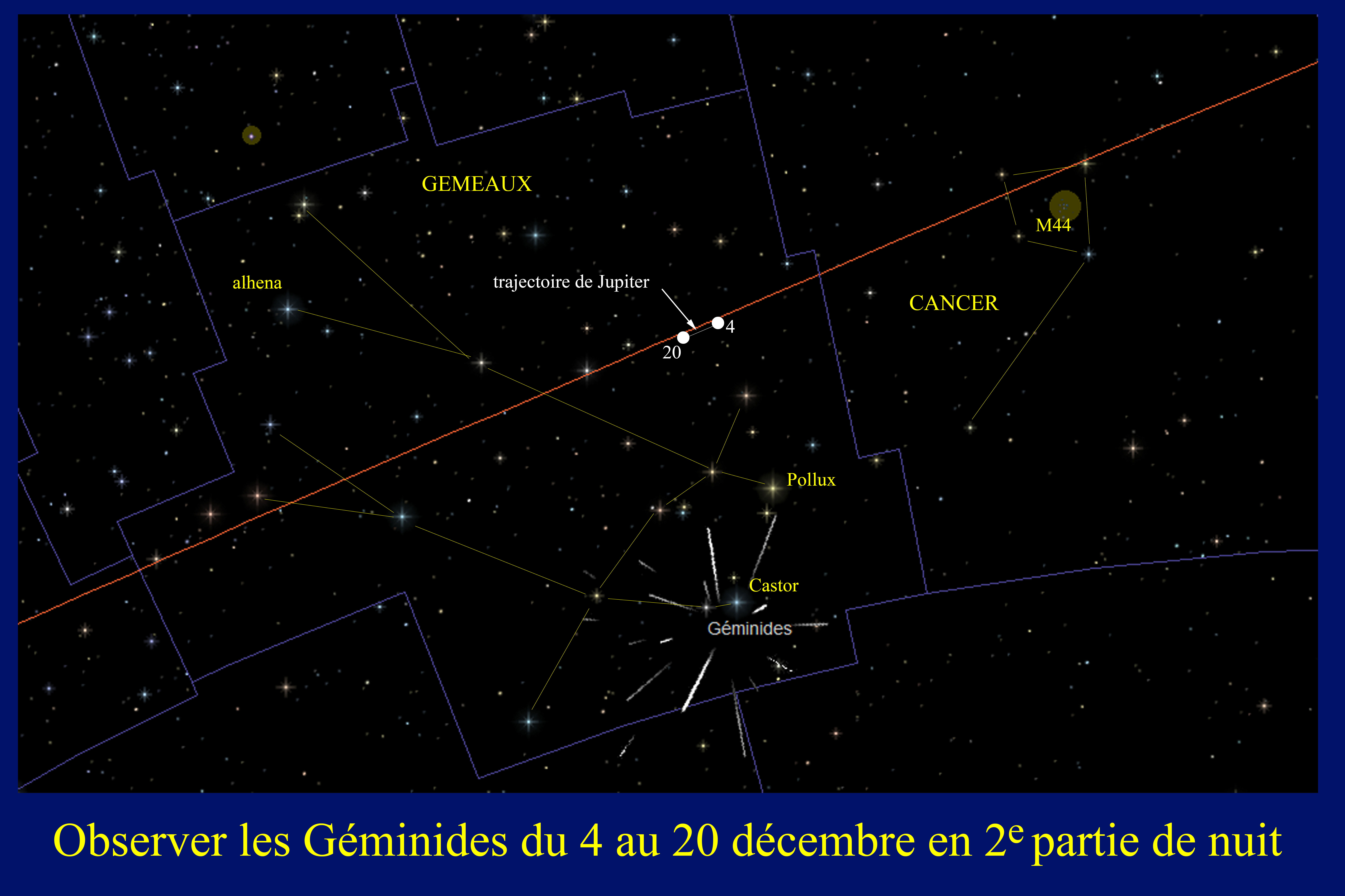 Du 04 au 20 : étoiles filantes Géminides (maximum le 14).
