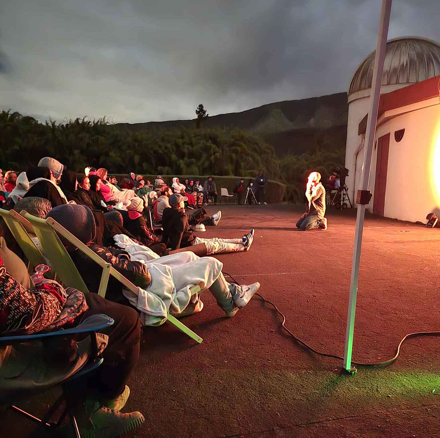 Les montagnes entourant les Makes se sont fait l'Echo du cri de Daniel Léocadie puis du son du Maloya pour une soirée exceptionnelle à l'observatoire ce 4 septembre 2025 où la Lune et Saturne ont joué à cache-cache avec les nuages.
